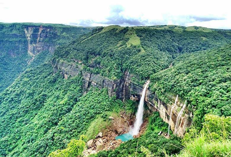 View Point. - You will see the beautiful waterfall known as Nohkalikai. Nohsngithiang Falls (Seven Sisters Falls)